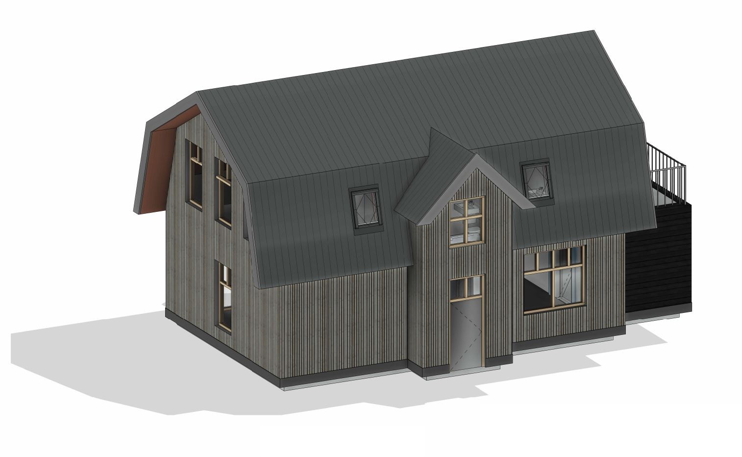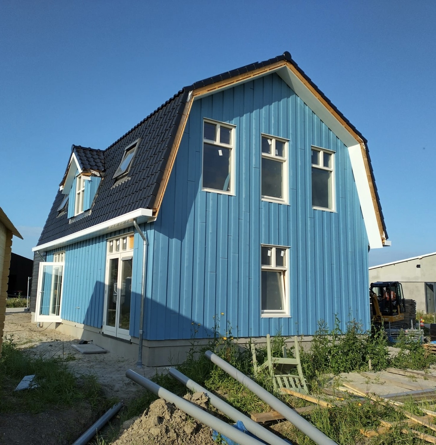 Bovenbouw: HSB-casco (vloer, gevel en dak), lariks gevelbekleding, sinus dakbeplating