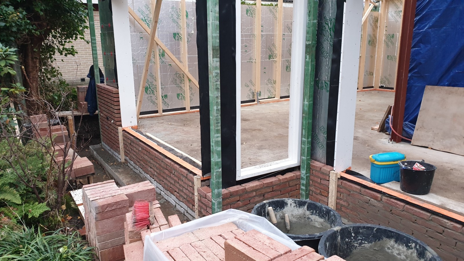 De uitbouw is gefundeerd op een PS-vloer en gerealiseerd in een gemetseld buitenblad i.c.m. een HSB-binnenblad. Door deze opbouw is een uitstekend isolerende buitengevel ontstaan, voorzien van hoogwaardige kozijnen en schuifpuien.